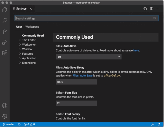 从上图可以看到,在新的交互模型中,与设置列表的交互就像与 VS Code 中的任何其他列表进行交互。获取搜索栏的焦点后,可以按向下箭头将焦点切换至下一行的设置条目。然后可以使用箭头键在设置列表中移动焦点。要编辑设置,在选中的设置条目中按下 Enter 键即可。