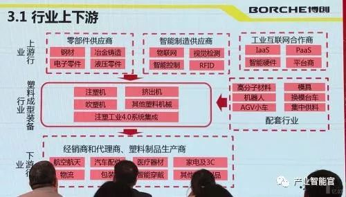 以注塑机为中心,博创智能整合了注塑全流程的模温机、冷水机、干燥机、上料机,机械手等,通过他们的互联互通和云端协同管理,构建了注塑工业4.0整体解决方案,并提供给客户。去年底,博创帮助美国一家公司做了一套无人的塑料箱生产线,这也是行业首条取得美国UL安全认证的智能无人化产线。英国伯明翰的客户也采购了博创方案用于生产路虎、捷豹汽车塑料件。一家工厂原来生产一个塑料衣柜的成本为98-110美元,使用博创的方案后,成本降为22美元。