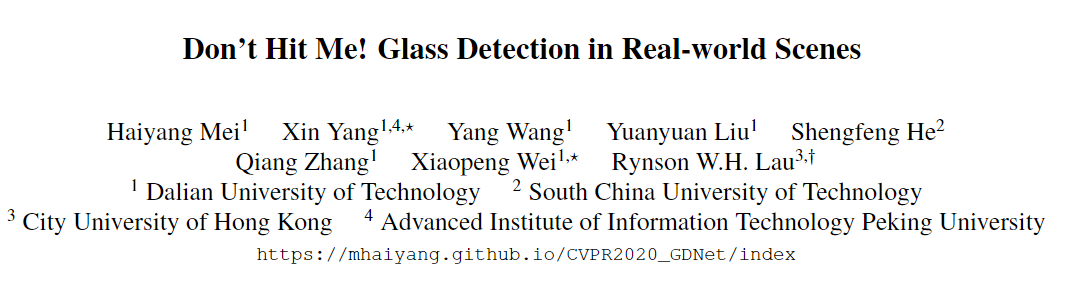 论文地址:http://openaccess.thecvf.com/content_CVPR_2020/papers/Mei_Dont_Hit_Me_Glass_Detection_in_Real-World_Scenes_CVPR_2020_paper.pdf