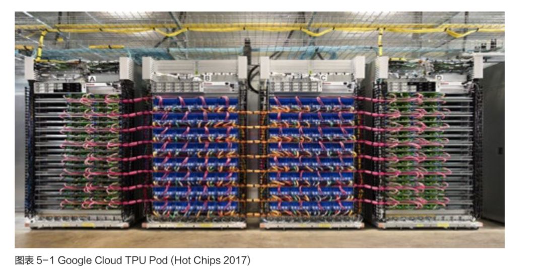 (Cloud TPU 的机柜包括 64 个 TPU2,能够为机器学习的训练任务提供 11.5 PFLOPS 的处理能力和 4 TB 的 HBM 存储器。这些运算资源还可以灵活地分配和伸缩,能够有效支持不同的应用需求。)