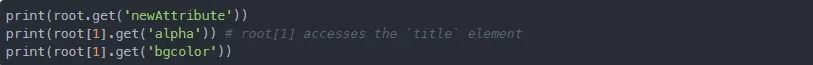 现在我们来尝试获取在上面代码中设置的属性的值。这里我们使用root元素上的数组索引访问子元素,然后使用get()方法检索属性: