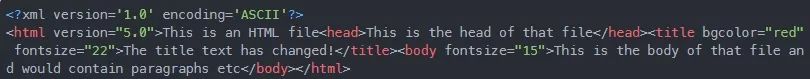 如您所见,我们成功地更改了HTML文档中的一些文本。由于我们传递给tostring函数一个xml_declaration参数,所以还自动添加了XML doctype声明。