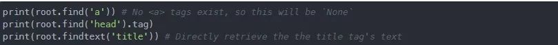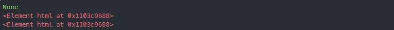 第一行应该返回nothing(也就是None),因为根节点本身没有任何父节点。另外两个应该都指向根元素,即HTML标记。我们查看一下输出,看看结果是不是我们所期望的: