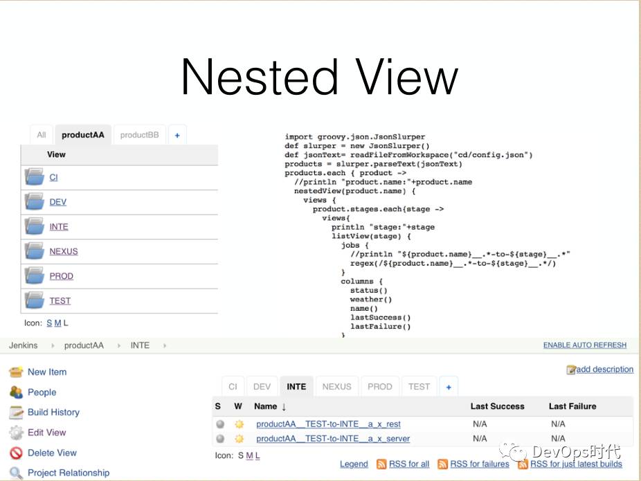 Nested View ,切成两级或者三级,现在有1000+的job,可以按照1级或者2级产品线去做归类;