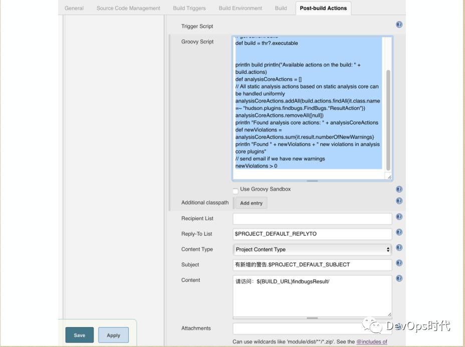 下面这个截图配置JOB邮件发送的Groovy脚本。