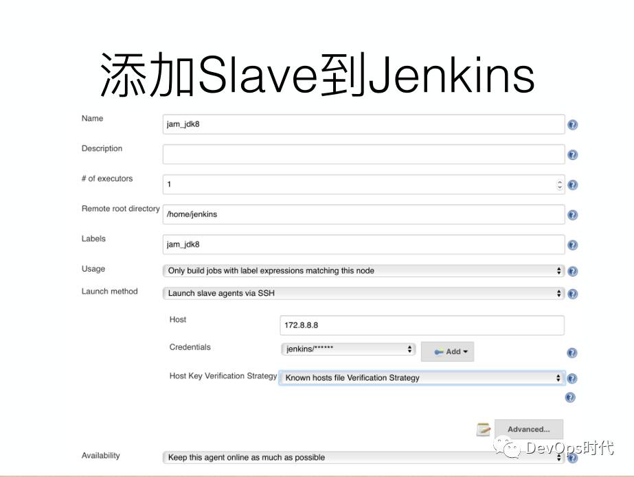 Slave这块,使用 slave Docker 镜像,构建环境隔离,添加 slave 到 Jenkins 。