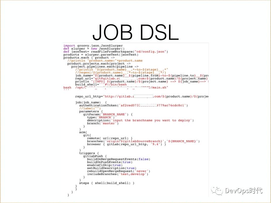 JOB-DSL ,单项目构建好模型后,从代码到某个环境或者从环境到某个环境,会用 JOB-DSL 批量做生成;