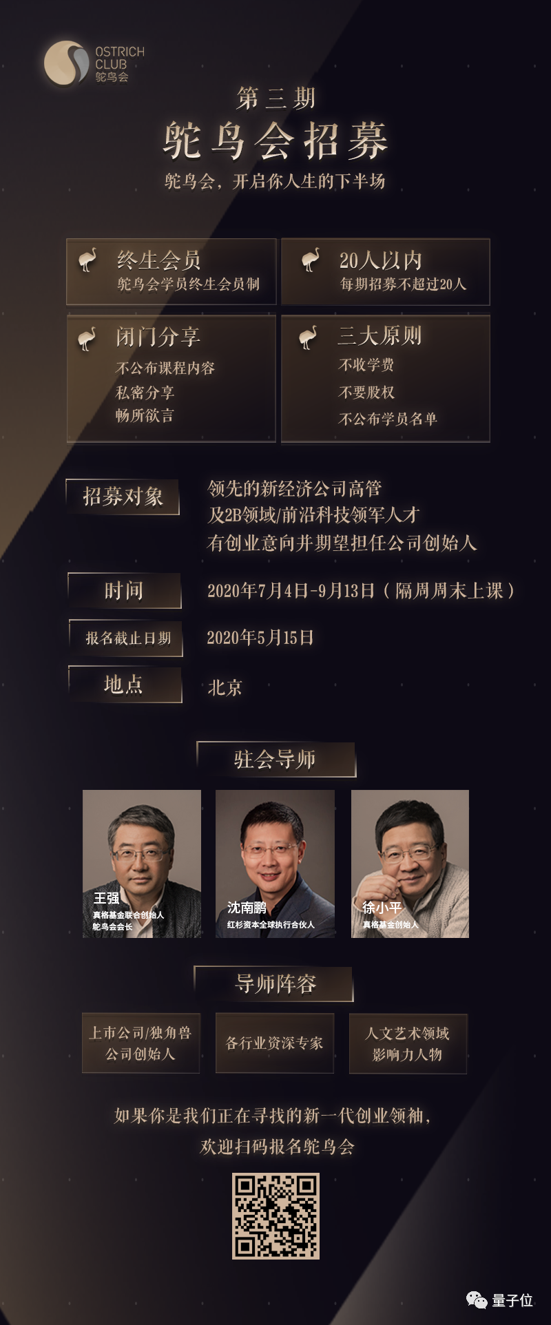 如果你是我们正在寻找的新一代创业领袖,欢迎扫码或点击阅读原文报名鸵鸟会!