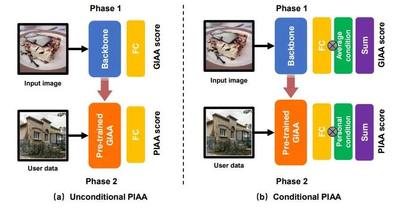 研究员对数据集进行了基准模型研究。包括有条件和无条件的 PIAA 两种建模方法,训练方式如下图所示: