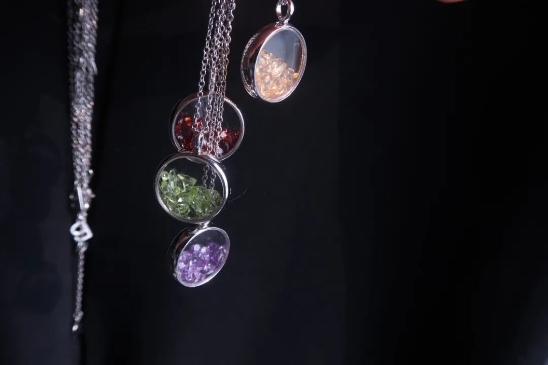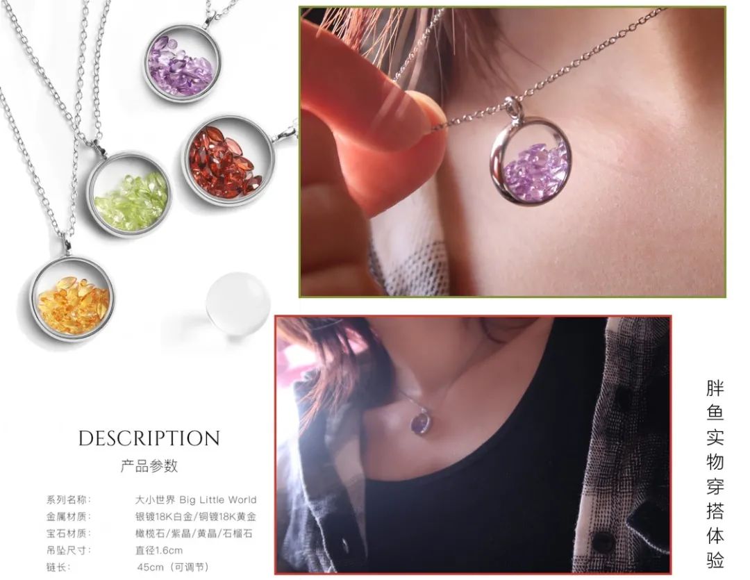 大小世界这款其实是以四季为背景各选一个代表色进行呈现,分别用了橄榄石、紫晶、黄晶和石榴石进行色系诠释,也算是一点惊喜。而且刚好这些颜色饱和度都没有很高,所以完全不会有那种影响穿搭的突兀感。