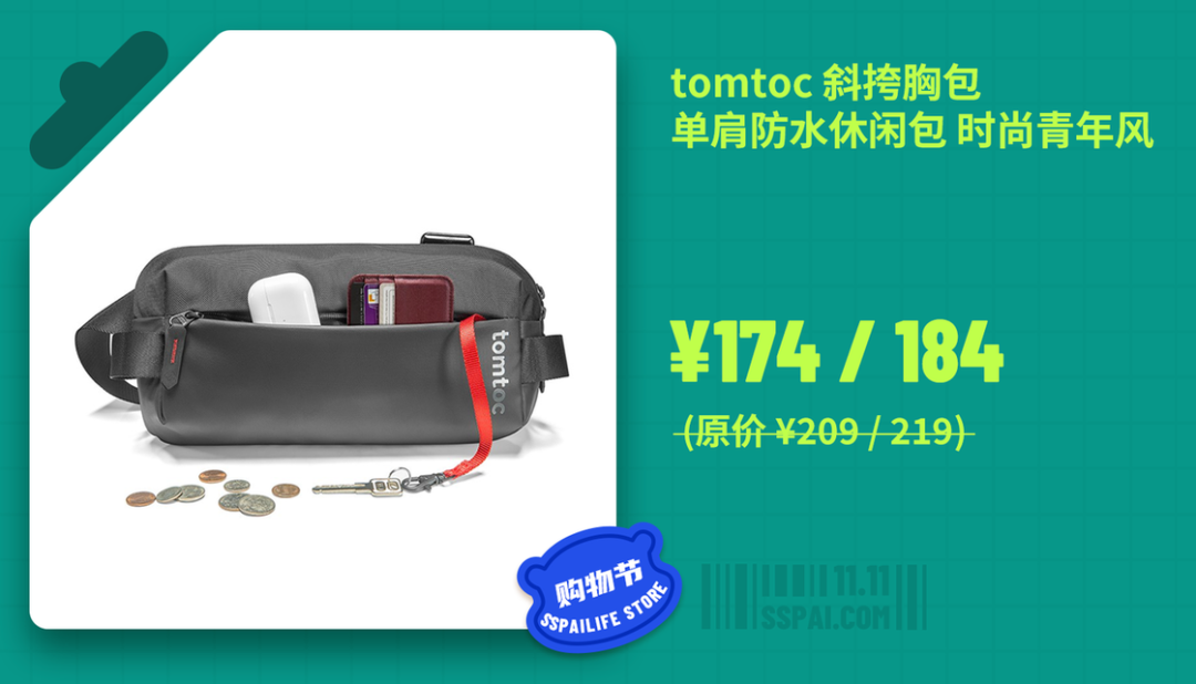 88!子的说里他可着家了过到微 https://m.tb.cn/h.fhY7JBW?sm=641eb2 【少数派】tomtoc 斜挎胸包 青年撞色款单肩休闲包防水时尚斜挎包