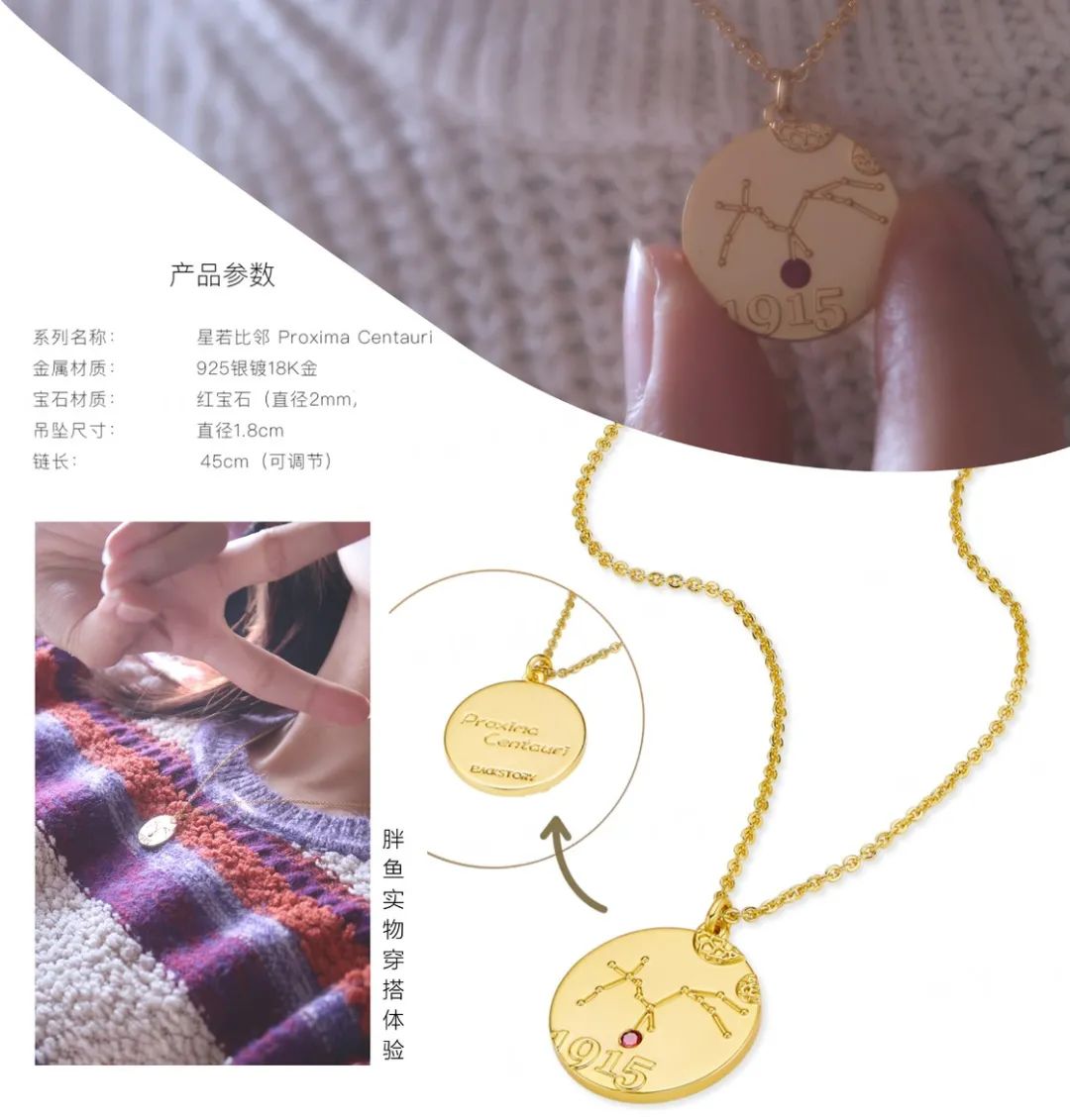 星若比邻是唯一一款不是白金款式的,我个人其实对黄金色系还真不怎么太感冒,因为本身感觉搭配起来不管是色彩还是类型上都局限很多。星若比邻这款利用了硬币款式进行大面积的黄金色系打底,配合了一颗高饱和度的缅甸红宝石进行颜色点缀,那一抹红色感觉刚好中和了黄金色系带来的压制力。同时利用半人马座星图图案进行了线条上的阐述,进一步舒缓了黄金色系的严肃。