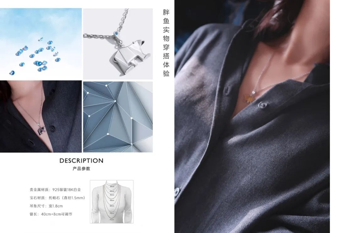 项链本身质感还是不错的,设计理念是在贵金属上还原折纸的造型,上手实际感觉确实立体性还是不错的。尤其是在连接北极熊的接扣处配了一颗象征北极的静谧蓝色托帕石,更是把原本单一的色调加了一个点睛之笔。