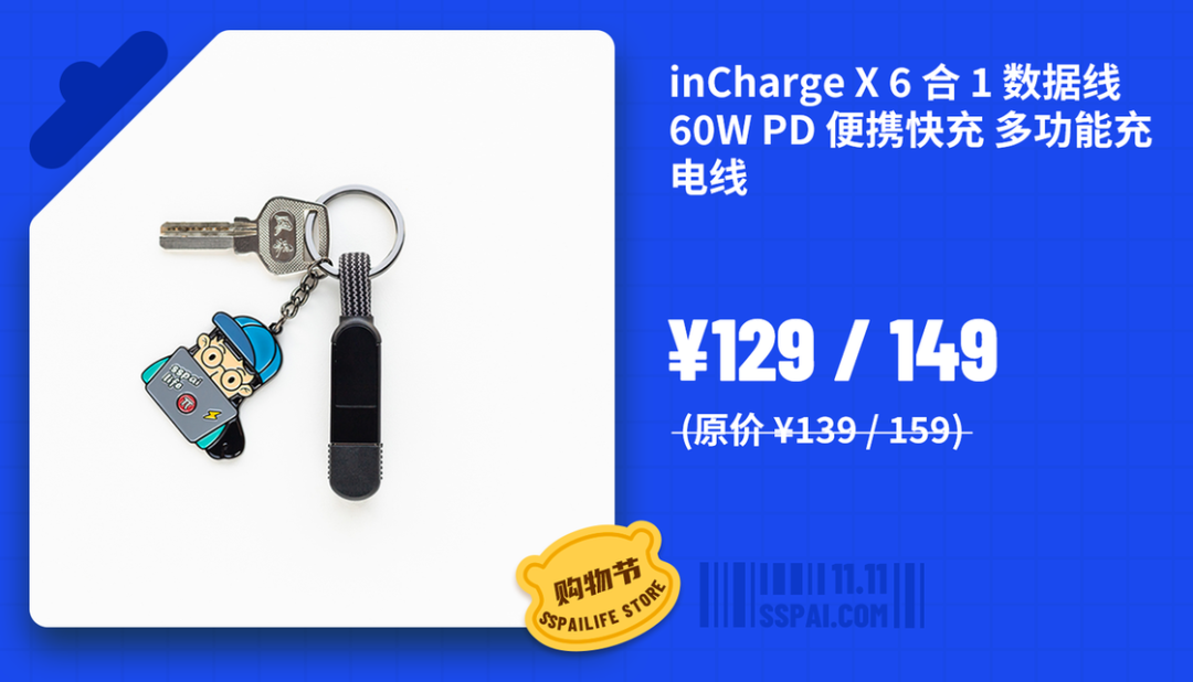 99微在来家是他可着以就一后!https://m.tb.cn/h.fhYiorV?sm=7f8528 【少数派】inCharge X 数据线 PD 60w 6合1多功能充电线 便携快充