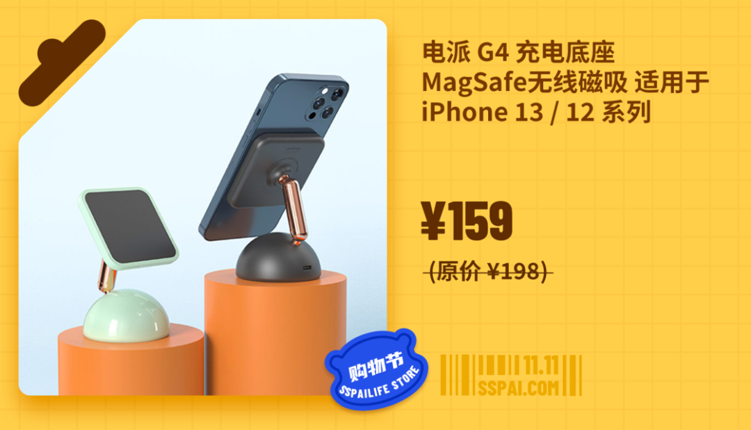 57哈们对都后他可着自和在家信 https://m.tb.cn/h.fgVC3VP?sm=99244d 【少数派】电派G4 MagSafe无线磁吸充电底座 适用iPhone13 12系列