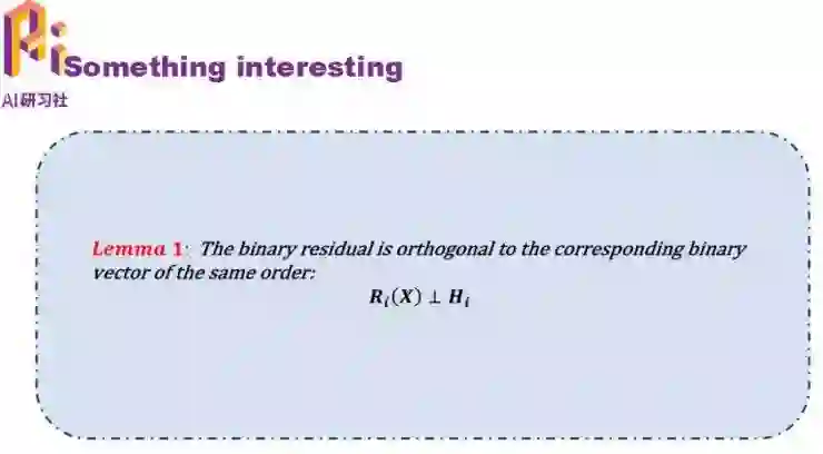 这是一些HORQ框架下理论上比较有趣的结果。结论一:二值的残差一定是跟相应阶数下的二值向量垂直。