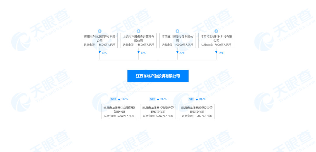 根据天眼查显示,上饶产融还和江西赣川投资、抚州市东临发展开发公司、邦宝新材料合资成立了东临产融投资公司。胡琦同时也是这家公司的董事兼总经理,而廖志远曾经在抚州南丰县任职,邦宝新材料是沐邦高科的全资子公司,赣川投资股权最终会穿透到廖志文。