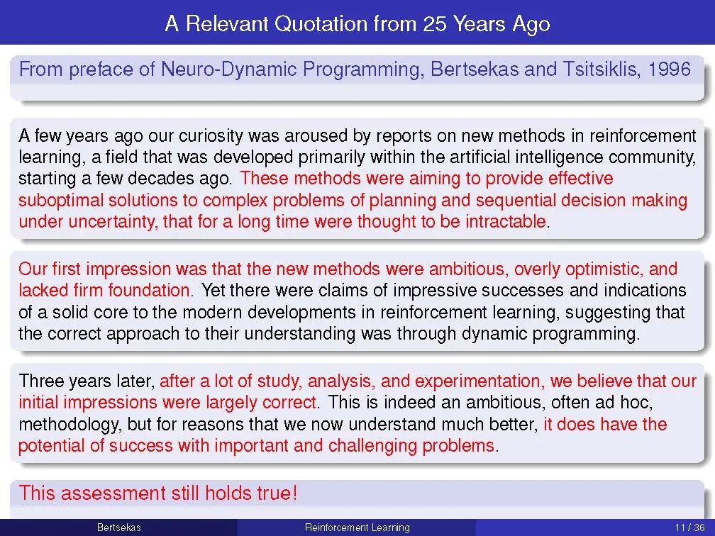 我们的学科从最优控制和人工智能的思想相互作用中获益良多。本专著的目的之一是探索这两个领域之间的共同边界,并形成一个可以在任一领域具有背景的人员都可以访问的桥梁。