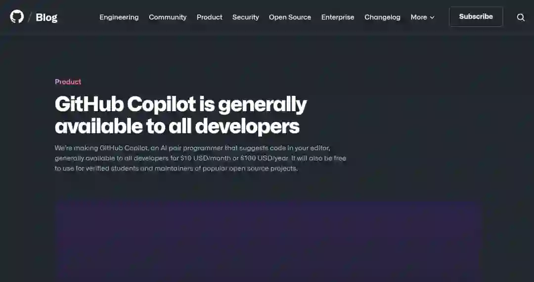 GitHub 表示,Copilot 是 GitHub 为开发者提供人工智能的第一步。从今天开始,所有开发者都可以使用它,而在今年晚些时候也将开始向企业提供 Copilot 的服务。