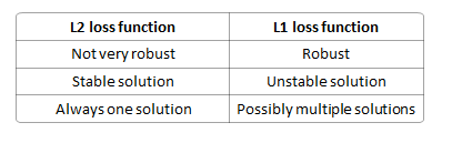 L1损失函数的结果更具鲁棒性,也就是说对于异常值更加不敏感。而根据其范数“天性”,L2的求解更为简单与“唯一”。
