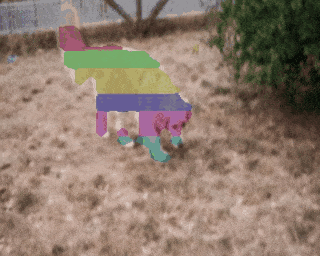 在这个task里面,我在第一帧画了一个彩虹texture,然后用我们的correspondence可以把彩虹texture一直传递下去。