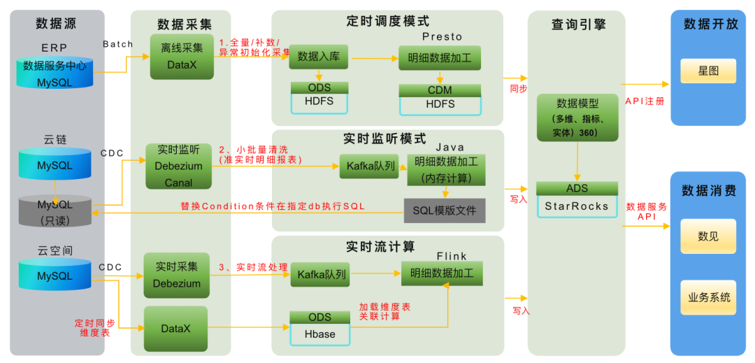 统一数据架构标准。所引用的大数据引擎、数据开发工具必须统一,这样才能保证开发脚本 SQL 语句是一样的,从而约束每个业务员出来的数据的一致性。