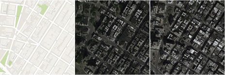 我们对数据方面思考得更多一些,我们针对数据集小的问题,我们有个想法:使用生成对抗网络去生成虚假的卫星地图,旨在进一步扩大数据集。我们的想法就是,使用这些虚假+真实的数据集去训练网络,网络的泛化能力肯定有更大的提升。我们的想法是根据这篇论文(pix2pix)来展开的,这是一篇很有意思的论文,它主要讲的是用图像生成图像的方法。里面提到了用标注好的卫星地图生成虚假的卫星地图的想法,真的让人耳目一新,我们也想根据该思路,生成属于我们的虚假卫星地图数据集。 Map to Aerial的效果是多么的震撼。