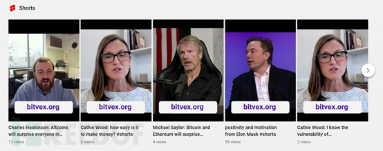 这些视频的脚本都差不多,都是在为一个叫BitVex加密货币交易平台站台,宣称这个平台可以每天带来30%的基础收益。