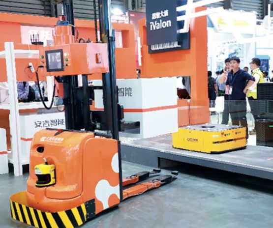 在本次展会上,井松科技带来了全向前移式堆高AGV和托盘式堆高车AGV两款新产品。全向前移式堆高AGV是井松科技拥有专利产品技术的一款车型,全自由360度方向运动,可使车辆在狭窄巷道内转向,提高货架的空间布置密度;最大举升高度12米,满足普通高位仓库使用要求。其与其它同类产品最大的区别在于,当AGV举升到最大高度时并不需要降低载重,速度可达2m/s,停止精度可达±1cm。托盘式堆高车AGV的特点是,采用激光、视觉、二维码等导航方式,实现4米以下高度物体搬运需求。井松科技总经理姚志坚表示,井松科技在做好项目、服务好客户的同时,还将不遗余力地致力于技术创新和产品研发,为中国物流装备行业发展添砖加瓦。