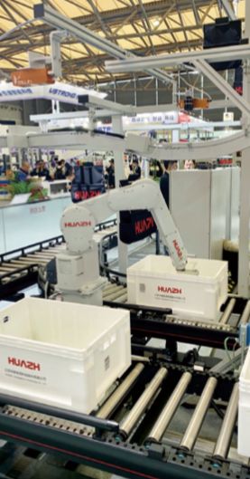 华章展示了最新的拆零拣选技术——“飞梭”五大系列产品及拆零拣选解决方案,包括悬挂分拣系统、货到机器人拣选系统、最新一代轻载穿梭车,以及穿梭车到机器人、机器人到悬挂链的混合分拣技术。