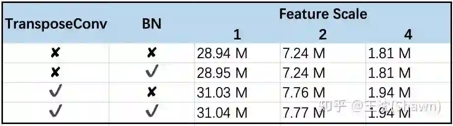 我把几种UNet变形的参数量列举如下,大家也可以自己验证。