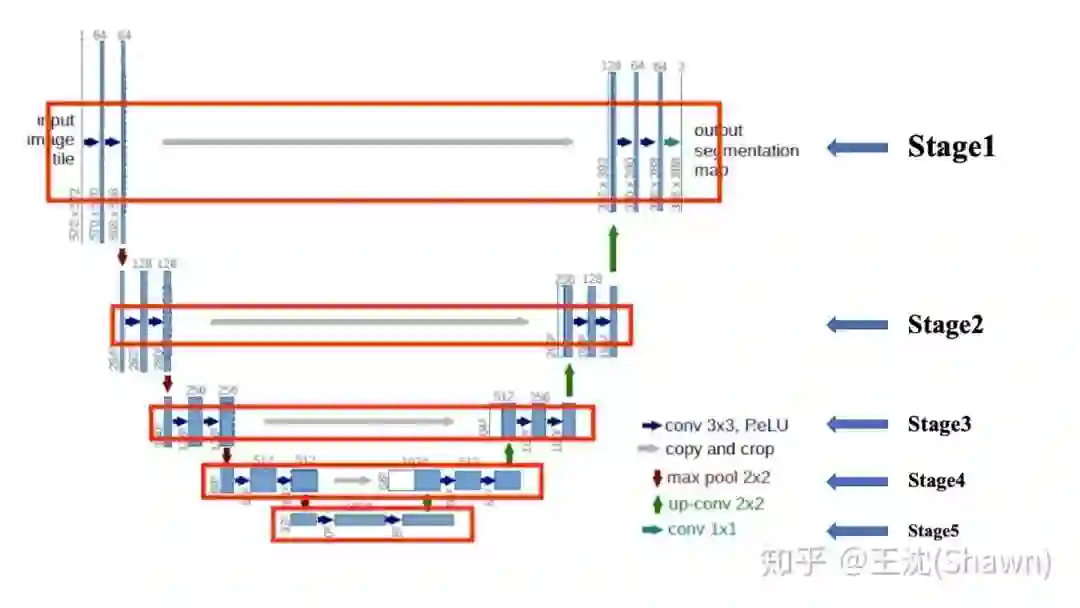 我们把UNet共分为5个Stage,分别计算每个stage的参数量。每个stage的filter数量为