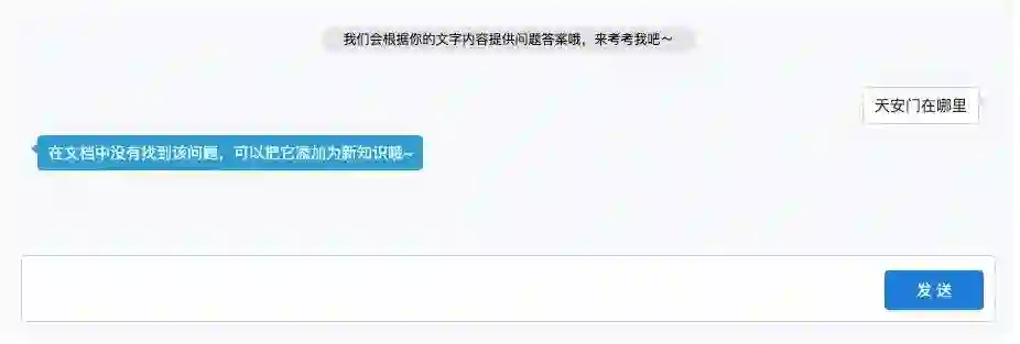 为了让大家可以快速测试,我们在公众号后台绑定了这个天安门知识问答机器人,欢迎大家关注我们进行体验。UNIT研发环境每天请求次数有限,大家先测先得。