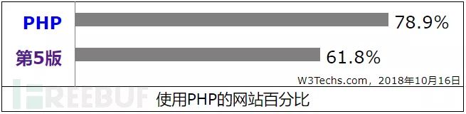 根据 W3Techs 最新的统计数据,在已知的语言中,有78.9%的网站采用了 PHP,全球所有的网站中使用 PHP 5 版本的网站占比高达 61.8%。再细分下来,使用PHP 5的网站中有 41.5% 采用的是 PHP 5.6,也就是说依然有很多网站仍然采用不再受支持的 PHP 版本。