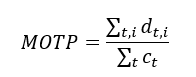 MOTP计算所有正确匹配目标的平均重叠率,公式如下。其中代表第t帧中IoU得分在阈值以上且正确匹配的目标数目,代表第t帧中第i个目标的输出的包围框与真实值之间的IoU得分。