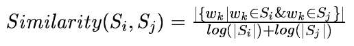 对于TextRank算法来说, 是其可以被改进的点。设计合适的句子相似度算法,可以提升摘要抽取的质量。在TextRank4Zh中,默认的句子相似度计算方式如下: