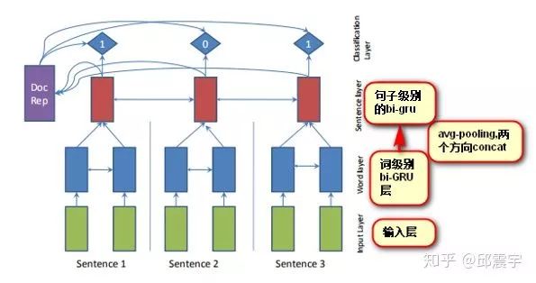 SummaRuNNer,基于RNN,将除了对词级别做RNN编码外,还在句子级别上做了RNN的编码,最后训练的target为每个句子是否属于摘要句子。如图所示: