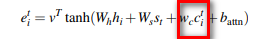1、在计算encoder的attention时,在原始的计算公式中,增加了历史时刻的attention history信息,如图红色框中的内容:  表示的是历史attention信息的累积。