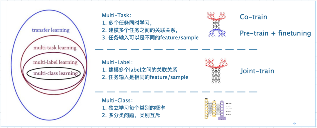 首先来厘清一些名词概念。如下图,解释了Multi-Task 与 Multi-Label等相关概念的关系。