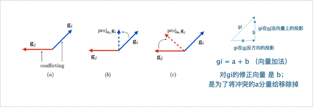 如果两个两个梯度向量存在冲突,则把 gi 向量中与 gj 冲突的分量给减去。