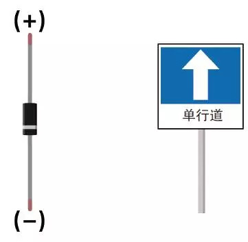 二极管是让电流单向流动的电子元器件,可以将其视为道路上的单行道标识。二极管的一边画有白线,表示负极,没有白线的一边是正极。因此,要对准位置连接电源和接地端。电流只从没有白线的一端流向有白线的一端。