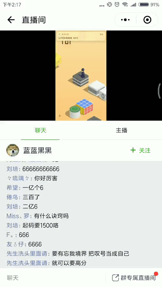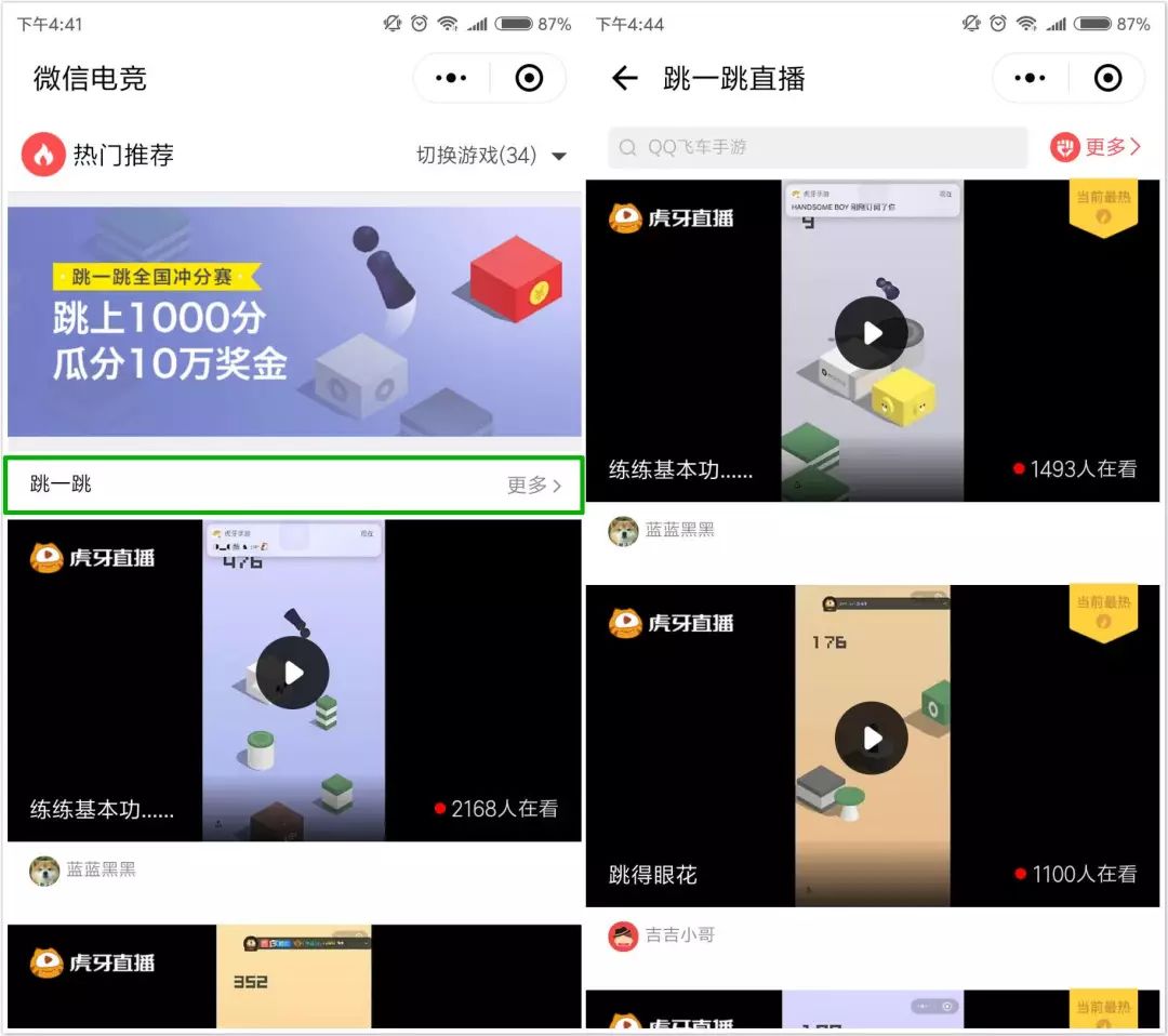 觉得一千分还遥不可及?那就先去小程序首页的「跳一跳」栏目,围观高手直播玩「跳一跳」吧。