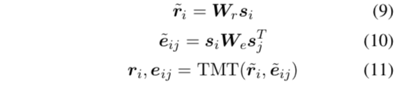 接着计算了句子对⟨senti , sentj ⟩的非归一化得分ẽij,作为树中句子 senti 可能成为 sentj 的父亲的程度。(如图2蓝区块所示)(10)