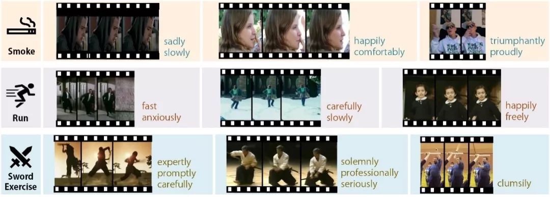 数据集中的32个动作及51个副词基本覆盖了人们表达中常见的描述。项目和数据集链接如下: