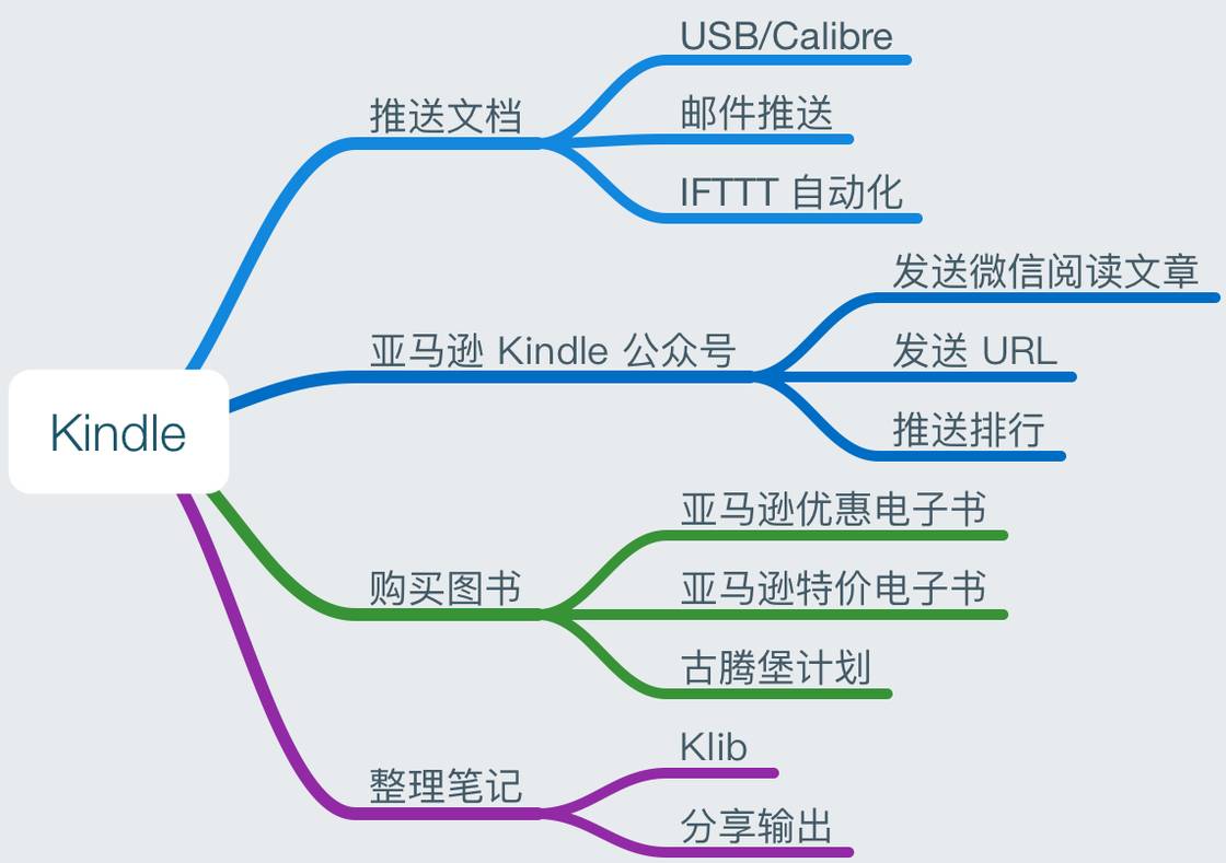 Kindle 最常用的使用方式就是通过内置的亚马逊 Kindle 商店进行【在线选书】--【购买】--【下载】--【阅读】。除此之外,我们可能需要将自己工作中的文档,互联网上的电子书等放在 Kindle 中阅读,以下是我常用的几种方式: