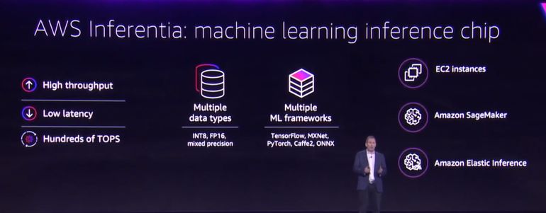 终于,亚马逊也加入了全球AI芯片大战。今天凌晨,亚马逊在拉斯维加斯召开的AWS re:Invent大会上,亚马逊AWS CEO Andy Jassy发布了一系列新产品,其中包括针对机器学习定制设计的云端AI芯片Inferentia。