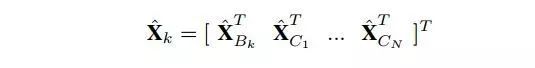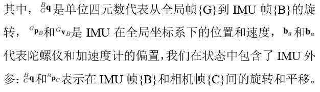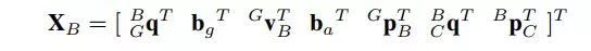 k时刻,我们估计器的完整状态包括当前IMU状态估计和N个相机位姿: