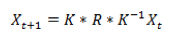 通过计算两帧之间手机三个方向的角度差值,可由前一帧的位置Xt利用下述公式估算出当前帧的位置 Xt+1: