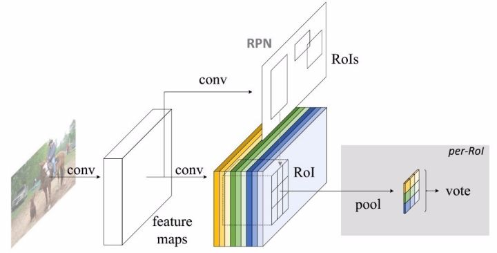 总而言之,R-FCN看起来像这样,RPN产生了RoI的内容: