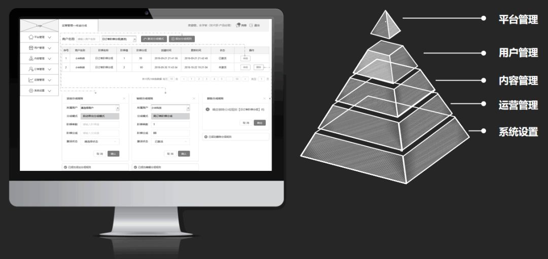 当我们收集到了相关业务部门的需求后,首先对需求优先级排序,其次对需求进行拆解与分析,然后形成不同的功能规划,最后把这些需求体现在后台原型中。